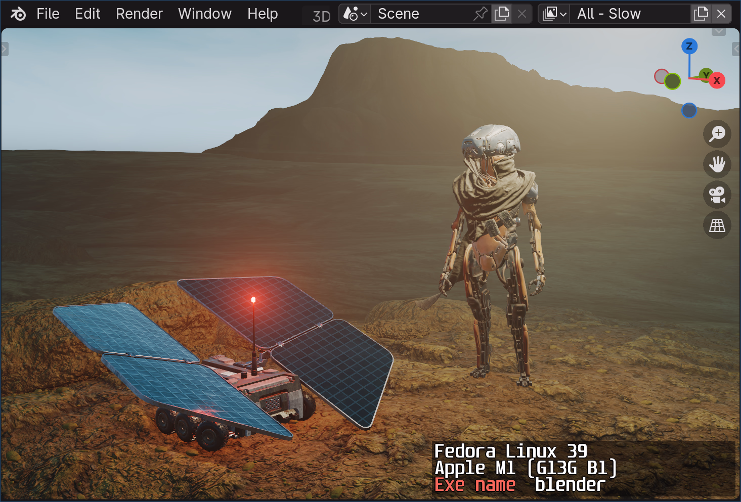 Blender “Wanderer” demo by Daniel Bystedt, licensed CC BY-SA.